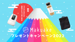 2022.01.01 プレスリリース アタラシイものや体験の応援購入サービス「Makuake」、 「新年マクアケましておめでとう!プレゼントキャンペーン2022」開始 〜2021年に実施された人気プロジェクトの商品を、抽選で合計2,022名様にプレゼント!〜