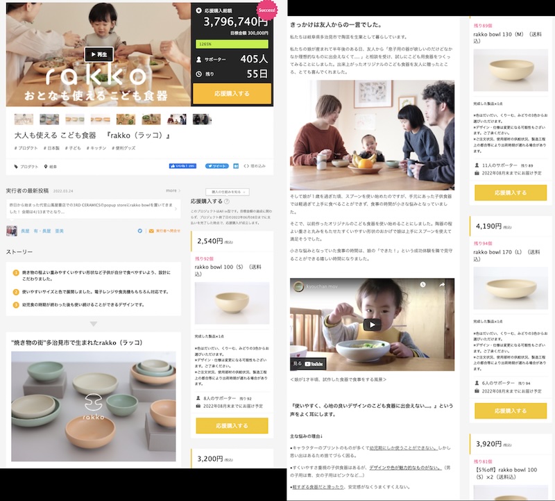 こうした「アタラシイ」商品やサービスを生み出す実行者の「挑戦」や「ストーリー」を応援する気持ちで購入するのが「応援購入」です。